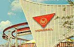 Monorail The monorail station at the fair included a domed central building fronted by a giant boomerang/amoebae hybrid. |