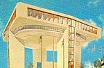 Seimons Pavilion The cantilevered wave-shaped roof seems to hover above the vast expanses of glass. Wave-shapes are common in googie architecture, expressing scientific principles through design much like the atomic symbol. |